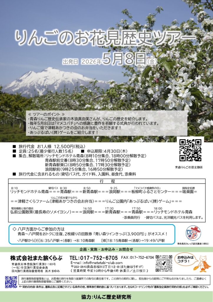5月8日(金)りんごのお花見歴史ツアー開催します。