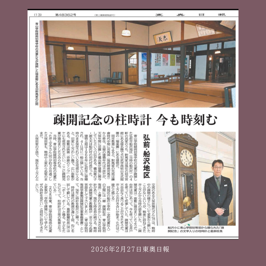 青山学院の子供達の疎開を受け入れた對馬家の人々は
