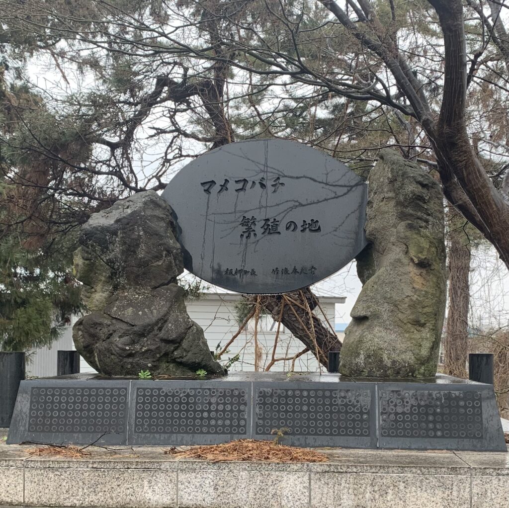 「マメコバチ繁殖の地」石碑は