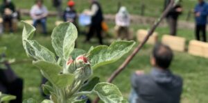 りんごの花とマメコバチに癒される季節まであと少し。
